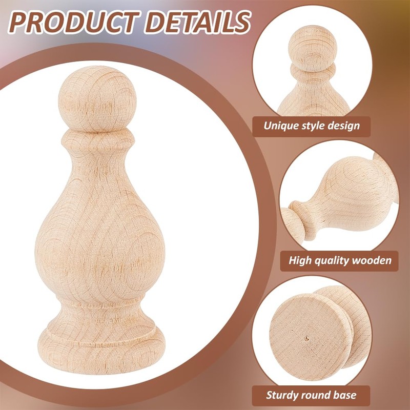 - Wide application: these unfinished wooden finials can be used as bedside decoration, curtain rod decorations, flagpole decorations, table and chair legs, fence style decorations, wooden lamp heads, or other lightweight cabinet legs, etc., a wide range of applications is waiting to be unlocked by yourself.