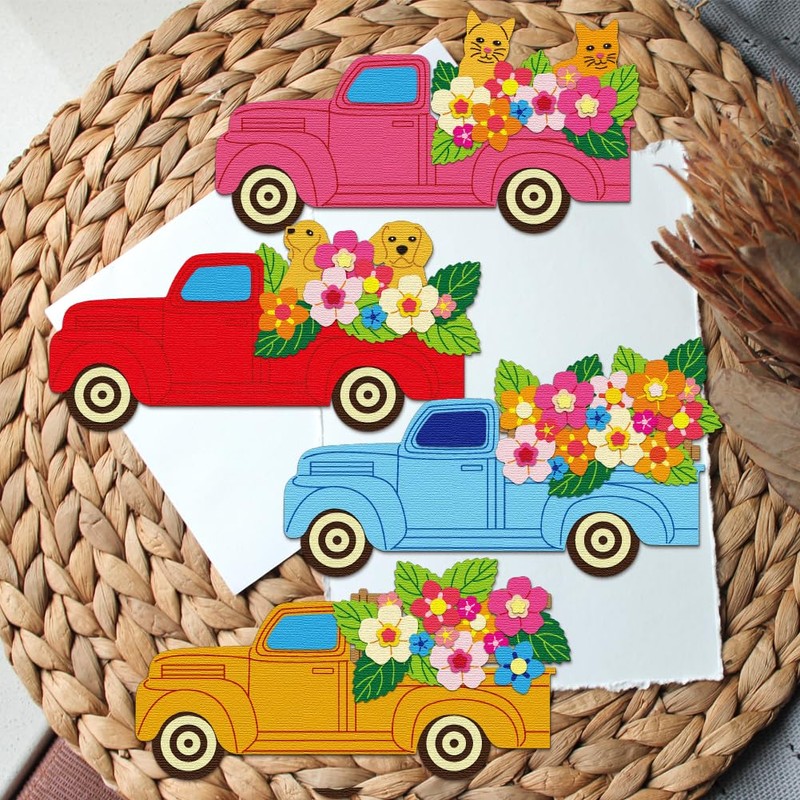 BENECREAT Truck Cat Dog Flower Leaf Cutting Dies, Carbon Steel Embossing Templates Metal Stencils Die Cuts for Card Making, Photo Album Decorative Embossing Paper Card