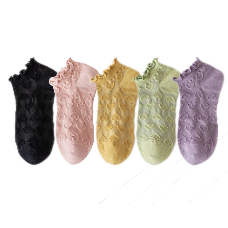 Benefeet Sox Cute Ankle Socks for Women Funny Frilly Socks for Girls Kawaii Lettuce Cotton Low Cut Socks Ruffle Socks, 5 Pack-embroidered Heart(yellow,black,pink,purple,green), One Size