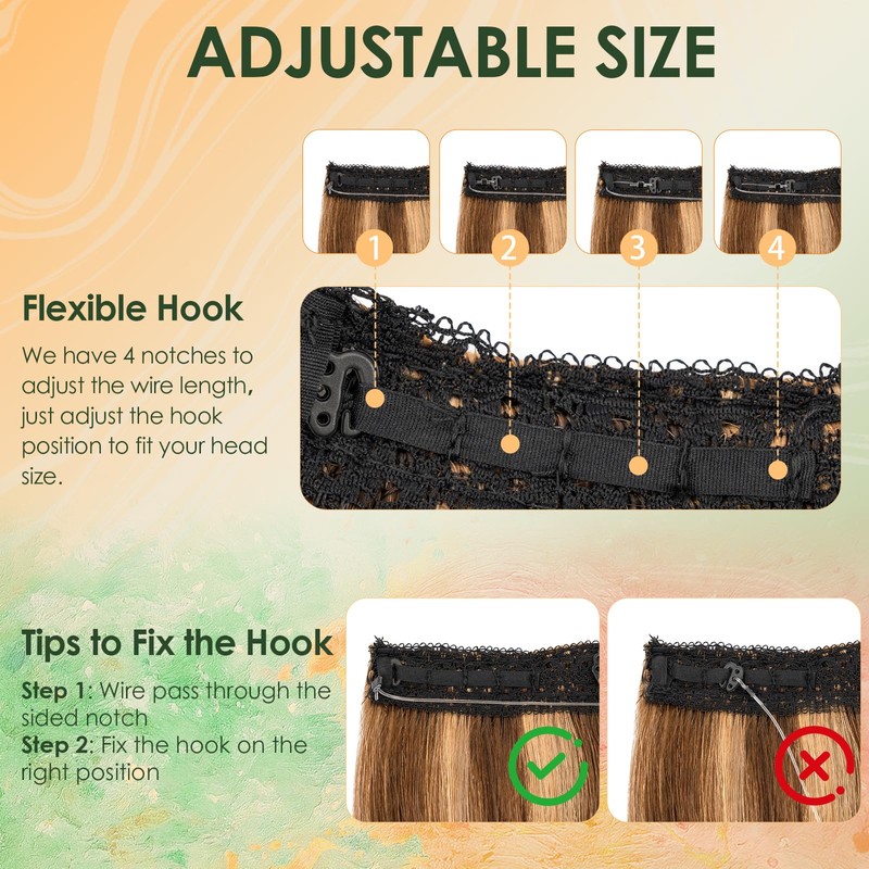 - 【Stable & Secure】Our hair extensions real human invisible wire double fixed with 1 fishing line and 2 clips, making the secret wire hair extensions real human more stable and secure; there are 4 adjustment buckle positions, you can adjust to the appropriate size according to your needs.We put 1 fishing line in the package for replacement.