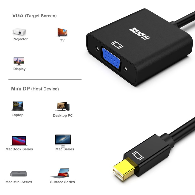 BENFEI Mini DisplayPort to VGA Adapter, Mini DP Display Port to VGA (Thunderbolt Compatible) Male to Female Adapter for ThinkPad SurfacePro PC