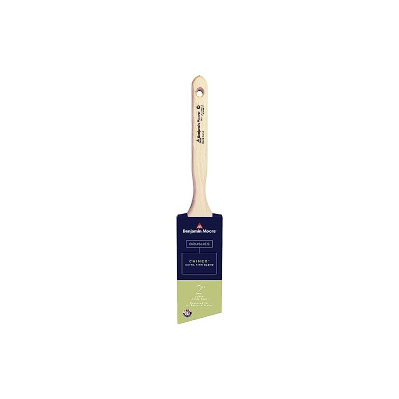 Suitable for: All Paints and StainsBenjamin Moore Paint Brush, Brush Type: Extra-Firm, 2-11/16 in L Bristle, Chinex Bristle, 2 in Ferrule, Ferrule Material: Stainless Steel, 7-1/4 in L Handle, Wood Handle, Angle Sash Handle, Suitable for: All Paints and Stains