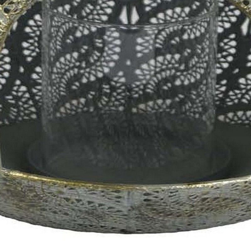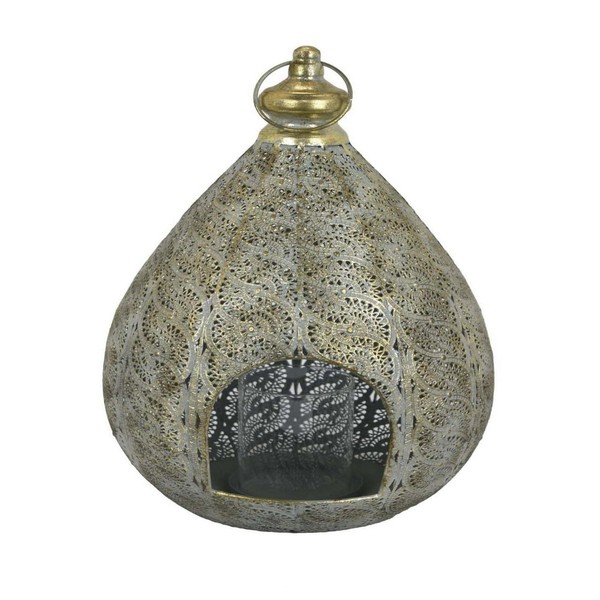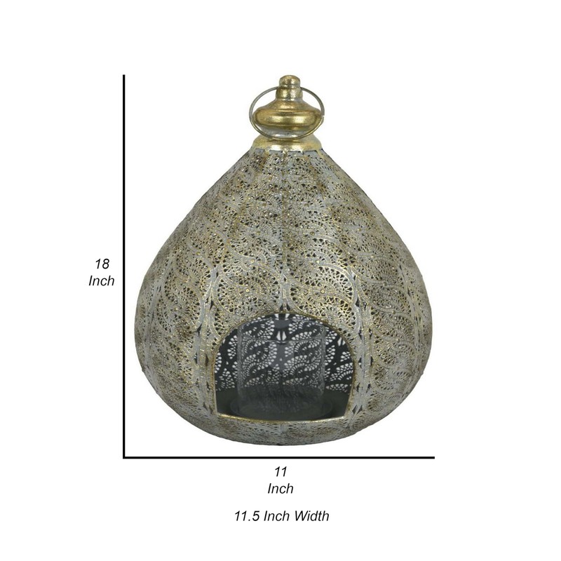 Benjara 18 Inch Decorative Lantern, Embossed Design, Tear Drop Shape, Gold Metal