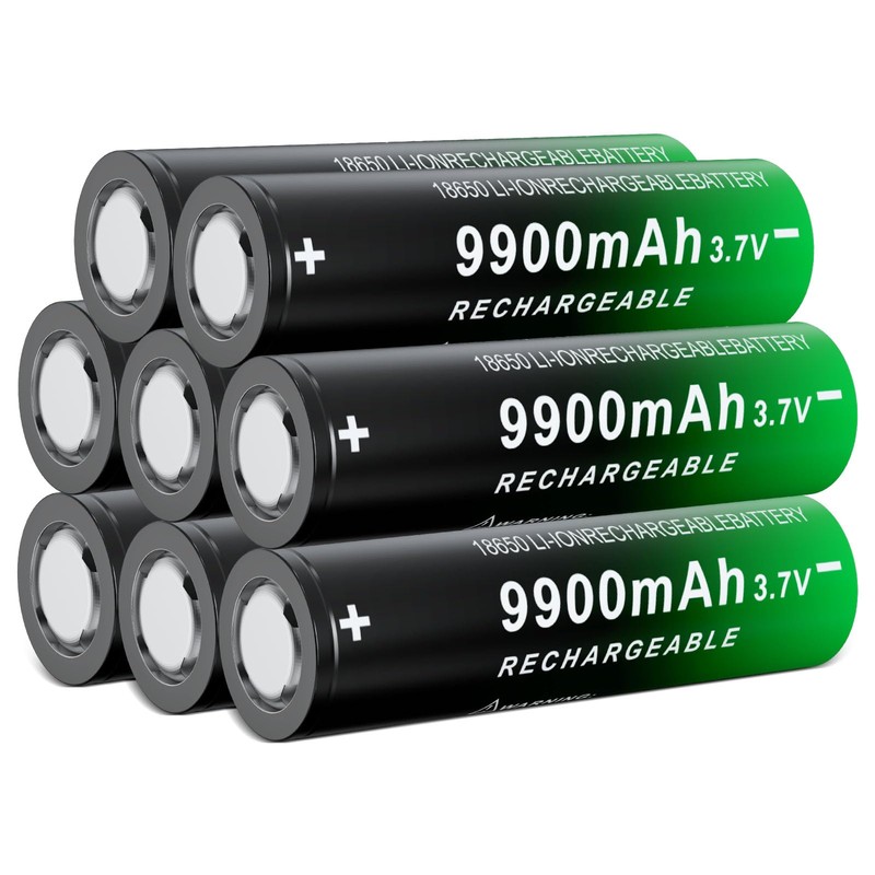 BENKIA 18650 Rechargeable Battery 9900mAh High Capacity 3.7Volt Li-ion Batteries for Led Flashlight Headlamp (Flat Top, 8 Pack)