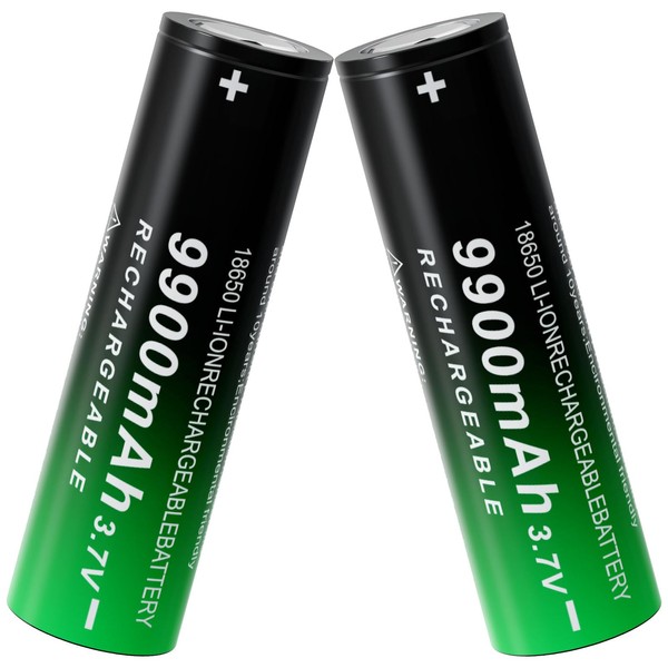 BENKIA 18650 Rechargeable Battery 9900mAh Large Capacity 3.7Volt Li-ion Batteries for Flashlight Headlamp (Flat Top, 2 Pack)