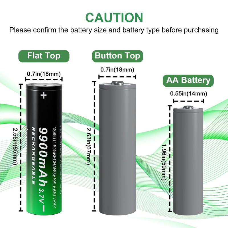 - 【Flat Top Size】67*18*18mm(2.63*0.7*0.7inch). NOTE: Please confirm whether the battery size and battery type before purchase
