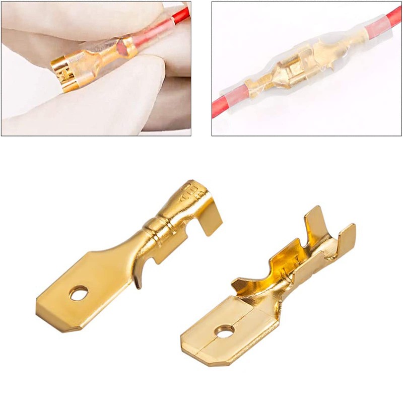 - 【Simple】The male and female spade connectors are easy to use and inspect. Simply crimp or solder the wire and cover it with high quality heat shrink tubing for a clean, strong, professional connection. For safety, please use electrical pliers to install