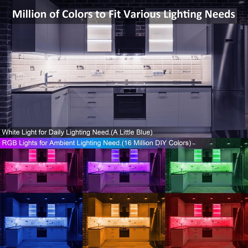 - Widely Use: This RGB under cabinet lights are more vibrant to light up your kitchen cabibet, counter, closet, desk, wine rack, TV back, shelf, bed, cupboard, wardrobe, display case etc. Any problem please contact us, we will solve your problem within 24 hours.