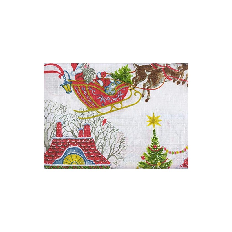 Benson Mills Christmas Village Tablecloth with Santa and Sleigh Textured Print Fabric (60 x 104 Rectangle)