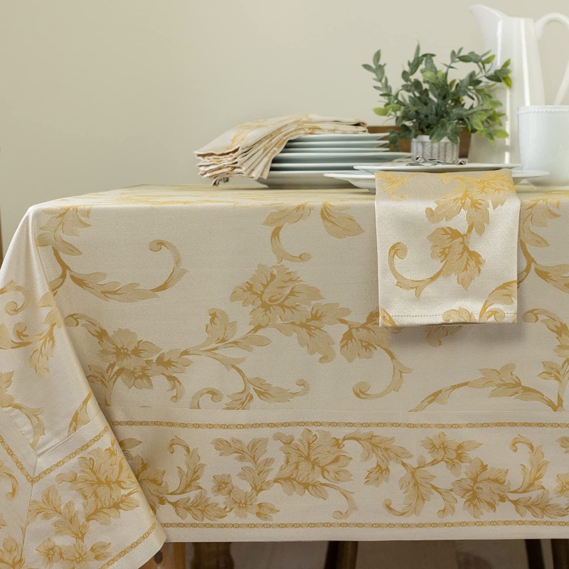 This Elegant Italian style woven Damask with a hand assembled mitered border will dress your table to the highest standards of dining in any setting. Perfect for your Thanksgiving and Christmas dining room