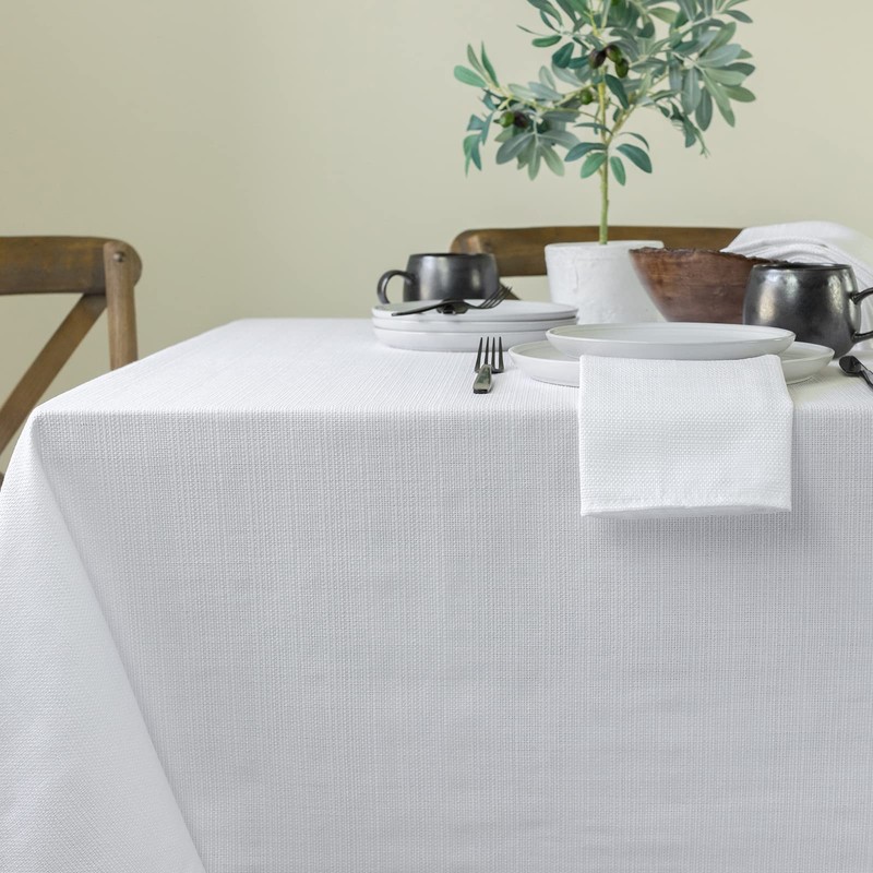 Benson Mills Textured Fabric Table Cloth, for Everyday Home Dining, Parties, Weddings & Holiday tablecloths (60" x 120" Rectangular, White)