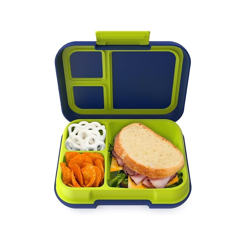 Bentgo Pop - Leak-Proof Lunch Box & Removable Divider for Ages 8+ & Teens - Lunch Container Holds 5 Cups of Food; 3-4 Compartments; Microwave/Dishwasher Safe; 2 Year Warranty (Navy Blue/Chartreuse)