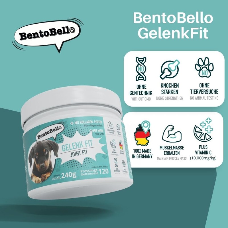 - ✔️More pleasure in movement: BentoBello joint tablets offer your dog an optimal mix of the best ingredients. They are recommended as a supplementary feed in daily use. Ingredients: