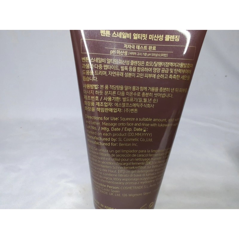Benton Snail Bee Ultimate pH-Balanced Cleansing Moisturizing 150mL