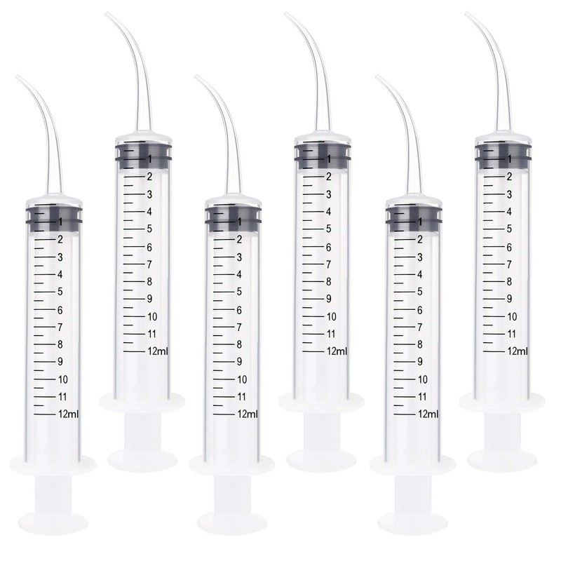 Benvo 6 Pack Disposable Dental Syringe 12ml with Curved Tip Dental Irrigation Syringe for Mouthwash Oral Care, Tonsil Stones Squirt Liquid Injection, Oil, Glue, Lab Pet Feeding(With Clear Measurement)