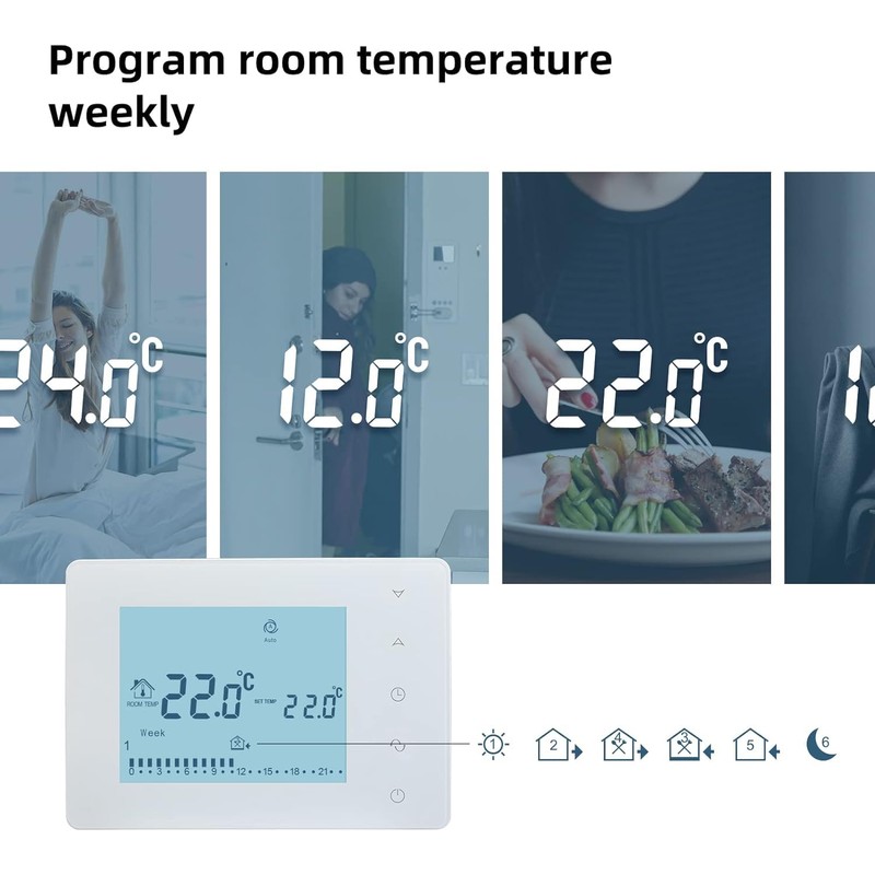 Beok BOT-X306 Wireless Programmable LCD Touch Buttons Thermostat with Receiver, Smart Room Temperature Controller for Gas Boiler Heating System, Standing & Wall Hanging, White