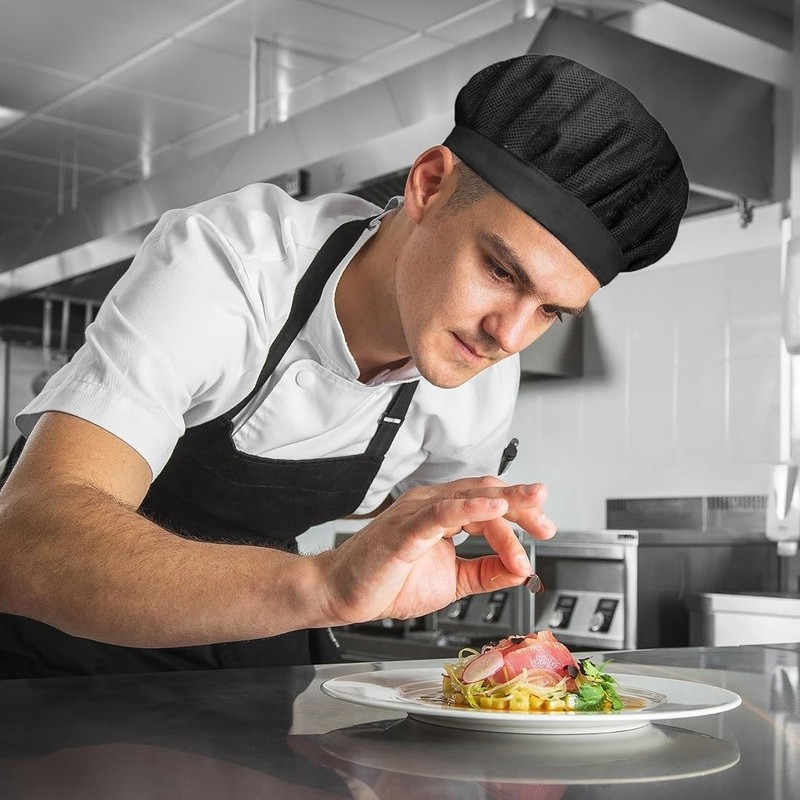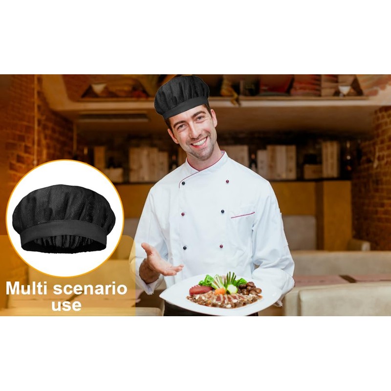 BEPSYOM 2 Pieces Elastic Chefs Hat Unisex Kitchen Chef Hat Food Service Hair Nets Adjustable Mesh Cap, multicoloured