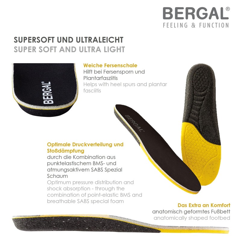 - Box contents: 1 pair of BERGAL trainer insoles in single size. Made in Europe. For best results, remove the existing shoe insole beforehand and replace it with the BERGAL shoe insole.