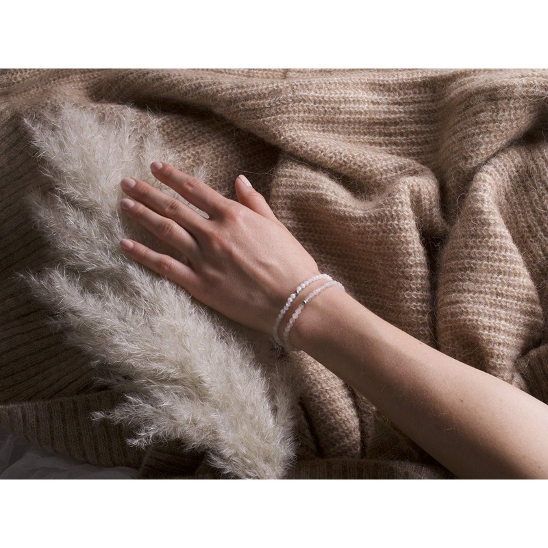 - Faceted pearl bracelet: The filigree natural stone beads are equipped with a facet cut. A delicate silver pearl made of 925 sterling silver rounds off the design. The bracelets are handmade and unisex. There is also a sustainable linen bag, very nice as a gift and for storing the bracelet!