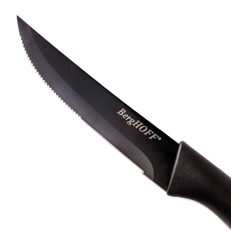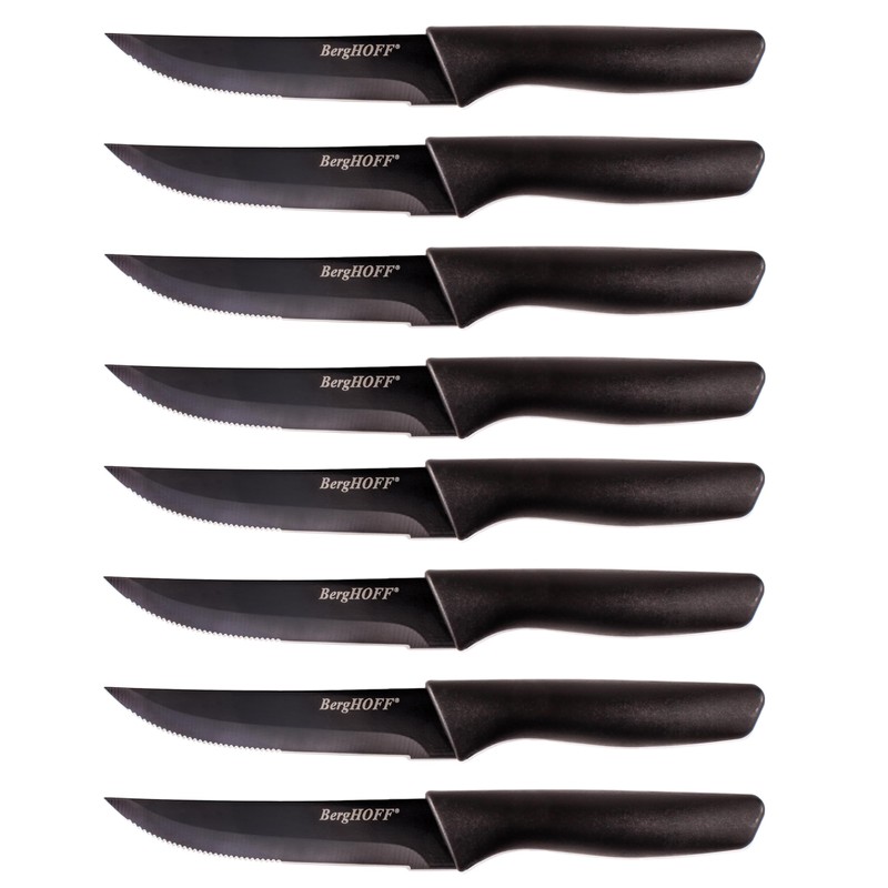 Berghoff LEO 8Pc Non-stick Steak Knives 4.25", Serrated Stainless Steel Blade, Ergonomically Designed Handle, Sharp & Well-Balanced, Black