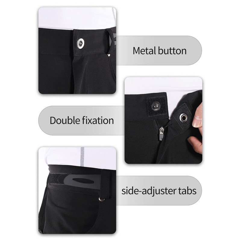 - Adjustable Waist System: The unique waist adjustment of BERGRISAR men's cycling shorts features a zipper fly with a locking flip zipper and an elastic waistband with magic tape, allowing for quick and easy adjustments to achieve a perfect fit with added security.