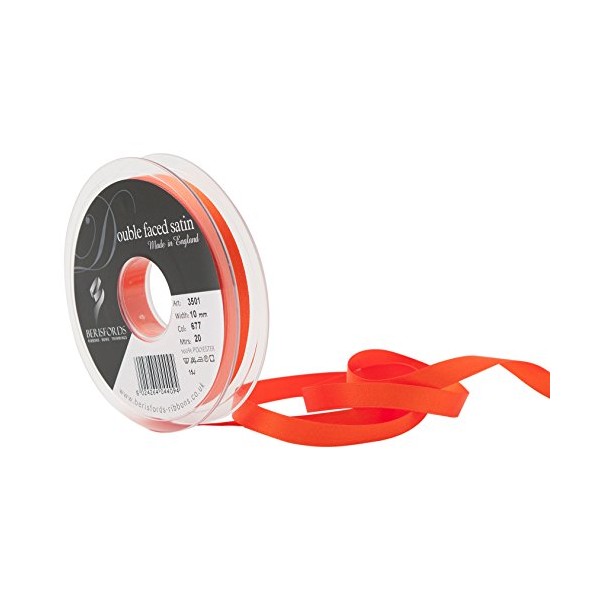 Berisfords Double FACE Poly Satin Ribbon, Flame, 10 mm
