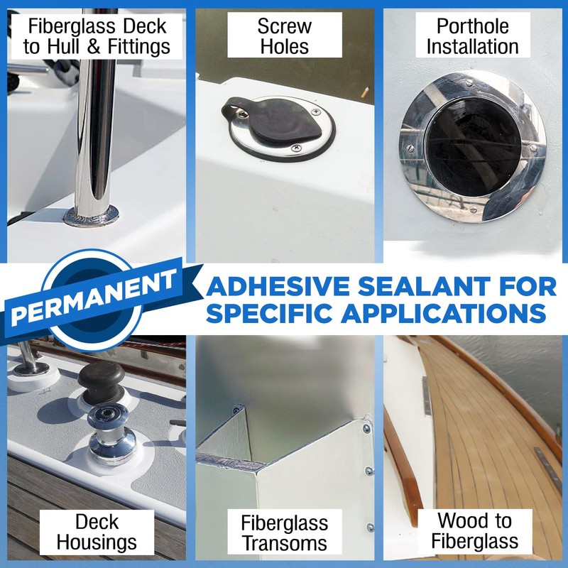 - Permanent Bonding and Sealing - Our marine adhesive creates a strong, permanent bond that still maintains just enough flexibliity. Perfect for use on deck fittings, through-hull fastenings, railings, transducers and more. Holds up well during vibration, movement and shock