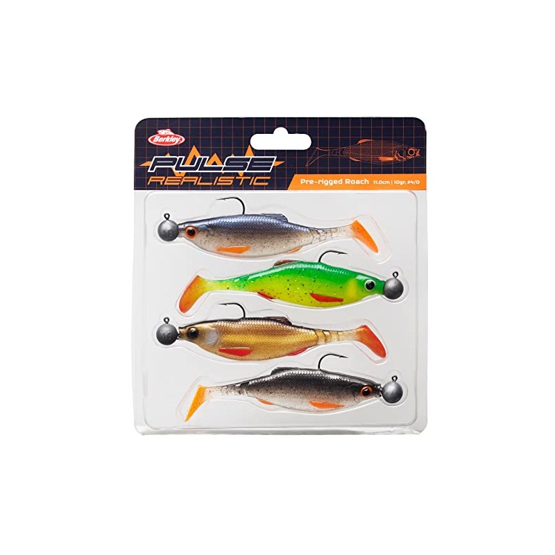 • Our predator fishing experts have combined 4 great catching colors of the super realistic Pulse Realistic Roach Shad soft fishing lure with matching jig heads. Life-like fish shape of a real roach, ready-to-fish lures including super sharp jig heads.