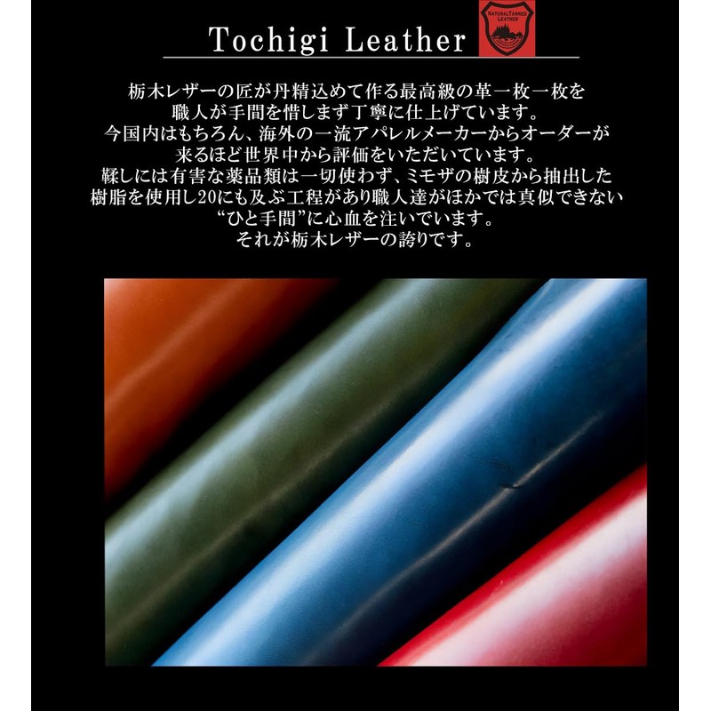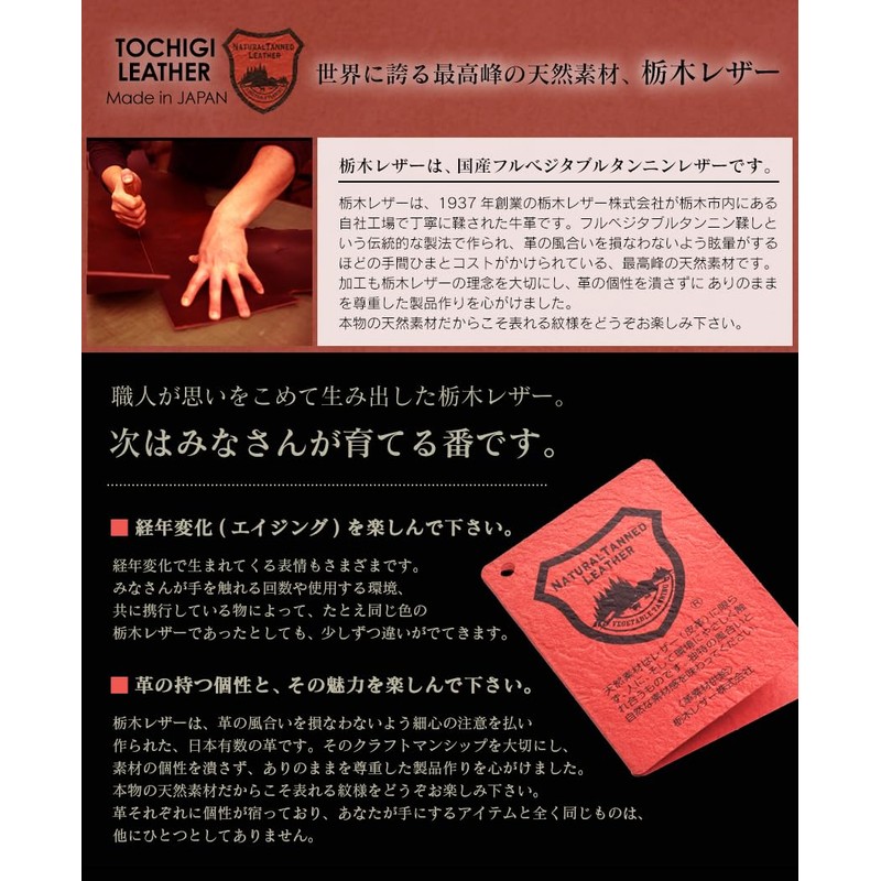 Made in Japan Tochigi Leather, known for its durable and authentic quality and textured leather.