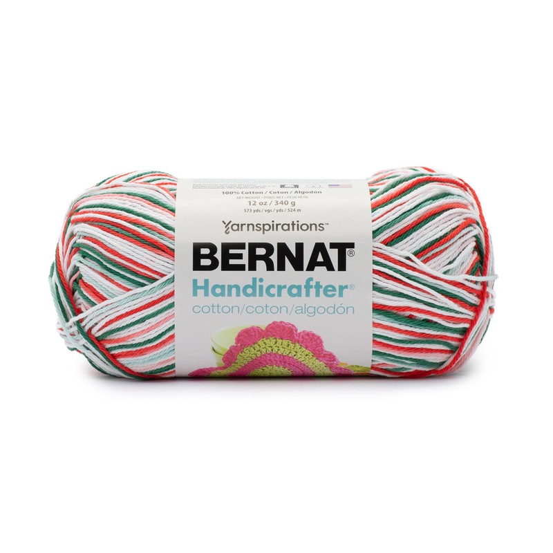 - Bernat Handicrafter Cotton Ombres Yarn in the economical big ball size is a natural, 100% USA grown cotton yarn. The perfect choice for your knit and crochet kitchen and home décor needs. Handicrafter is a versatile worsted weight yarn, that’s great for small projects like dishcloths and potholders, to home décor staples like afghans! Available in a wide variety of shades, including neutrals, brights, and pastels. Conveniently machine washable and dryable for easy care.