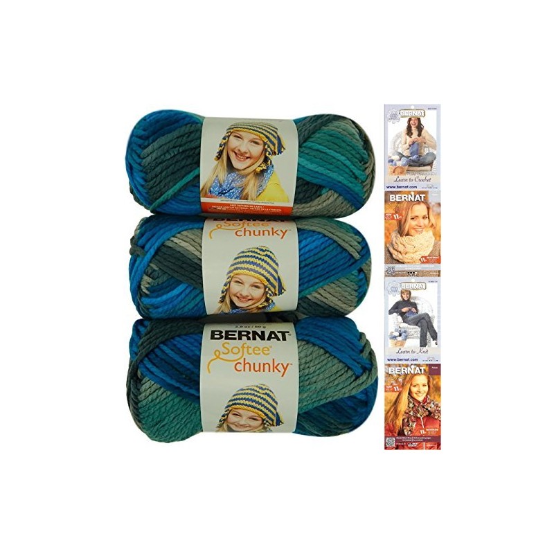 - "Bernat Softee Chunky es un hilo de peso súper voluminoso que es perfecto para prendas de punto y ganchillo, accesorios y proyectos de decoración del hogar"