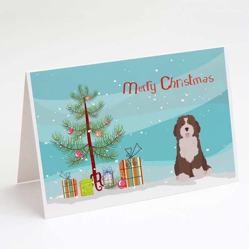 Bernedoodle #2 Christmas Tree Greeting Cards and Envelopes Pack of 8
