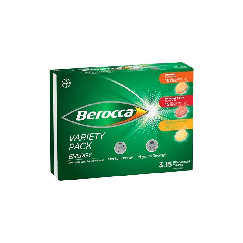 Berocca Energy Effervescent Tablets (3×15 Variety Pack)