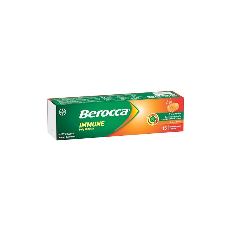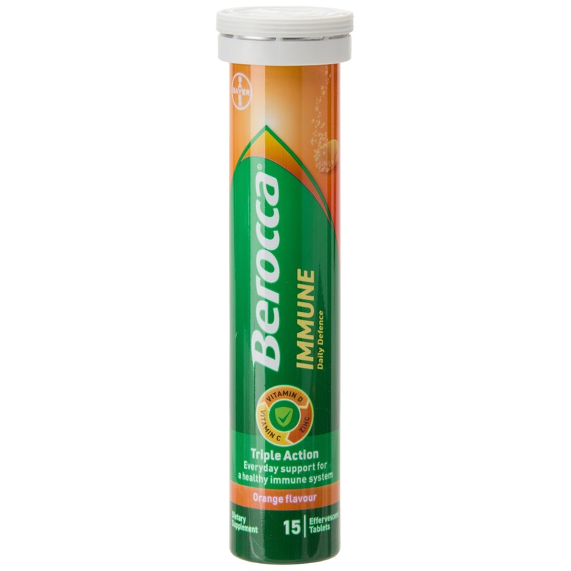 Berocca Immune Daily Defence Vitamin C, D and Zinc, Orange Flavoured Effervescent Tablets 15 Pack