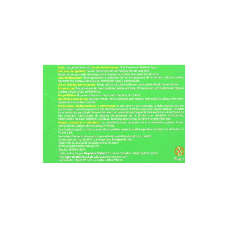 • Este producto es un suplemento dietario, no es un medicamento. Suplementa dietas insuficientes. Consulte a su médico y/o farmacéutico.