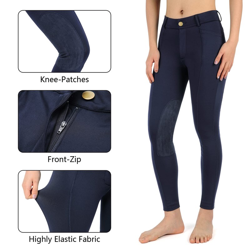 BEROY Pantalones de equitación con Parches de Rodilla para niñas con Cremallera Frontal Ecuestre y Bolsillos
