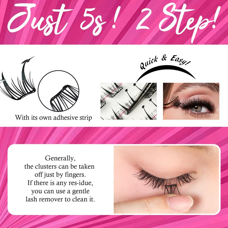 • Easy Removal, No Residue: After using, the self adhesive lash clusters can be taken off just by finger, no lash glue remover required. The easy removal method is gentle, harmless to your natural lashes as well. After removing, there won't be any residue left
