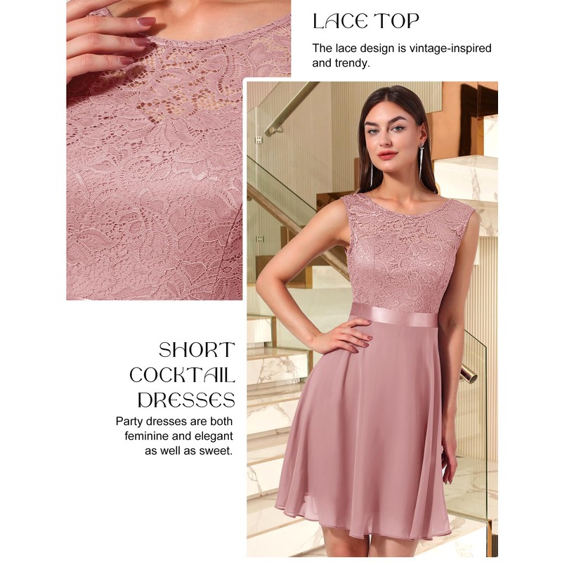 BeryLove Women's Summer Cocktail Party Dress | Sleeveless, Flowy A Line, Short,Lace,Prom Wedding Guest Lace Formal Dresses 7005 B-Blush XS
