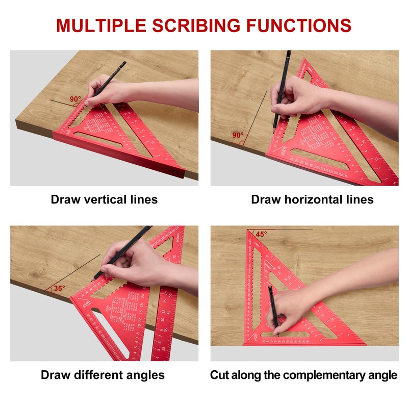 - Drill Gauges:The 7inch rafter square has φ3-15mm holes to help you accurately determine the screws size, and make your woodwork efficiently.