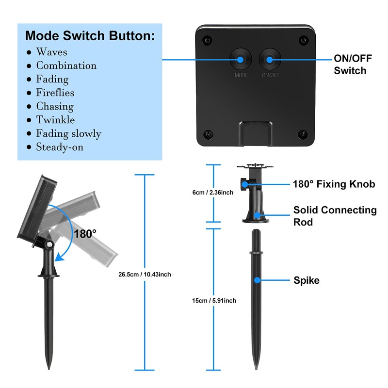 - Super Easy to Install: You surely will enjoy the ease of putting on the string lights for the highly flexible silver wire can be easily bent into any shapes you want and wrapped around trees, fences or any other objects. The solar panels can be either mounted on the wall or plugged into the grass to get sunlight exposure. Considerably all necessary mounting accessories are included in the package for instant use.