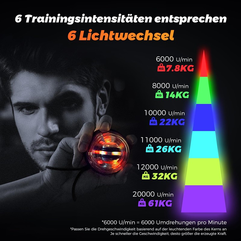 BeSokar Gyroball Wrist Exerciser Ball Auto Start 5 Level Resistance/Light Control Gyroscopic Forearm Trainer for Strengthening Arms Fingers Wrist (Metal Case)