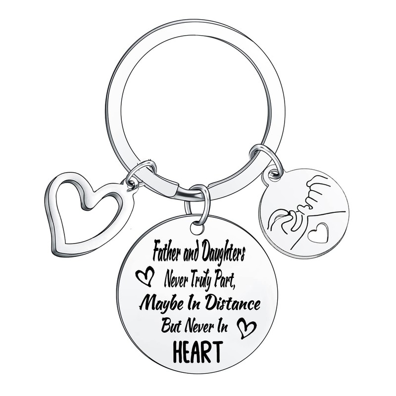 - The exquisite keychain engraved with meaningful words:"Father and Daughters Never Truly Part, Maybe In Distance But Never In Heart."The love between daughter and father is forever. It is a suitable as father daughter gift. If you are looking for a thoughtful gifts for your father daughter, the keychain is a perfect memorable and special present to express your love.