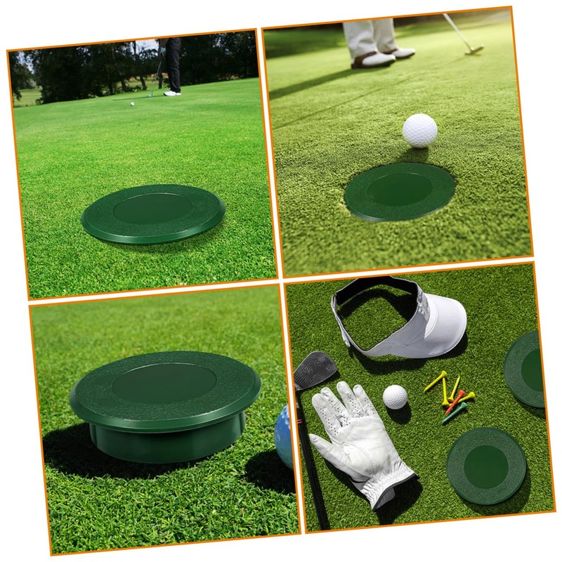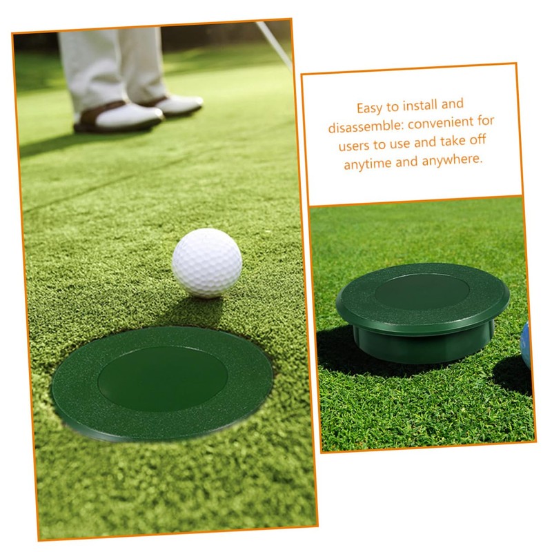 Golfs Practice Accessories A great accessory on putting green.Golfs Hole Cup Cover It can be used on all practice putting greens.Golfing Practical Tool It can effectively protect putting green hole from easily damaged.Golf Activities Practice Tool those enthusiasts.Golfs Practice Supplies The Hole Cup Cover is made of ABS, portable and lightweight