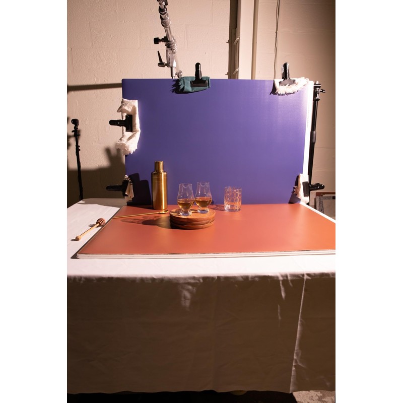 • Three solid color backdrops: Bluejay | Rust | Marigold (313E73 | 974E3D | D49916)