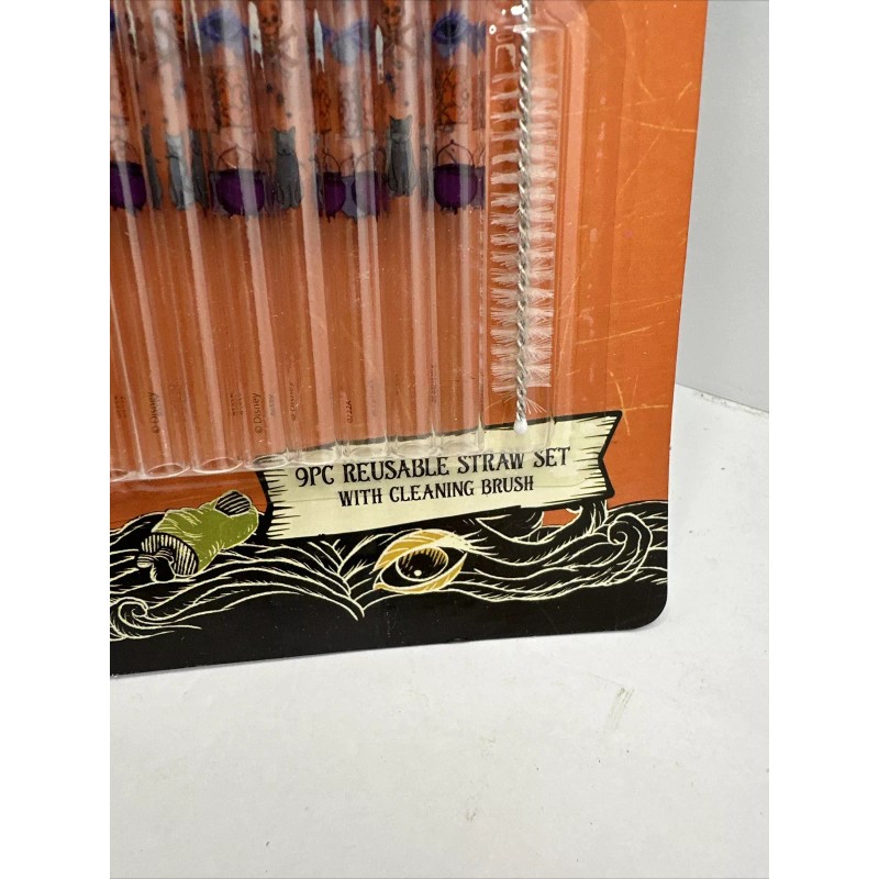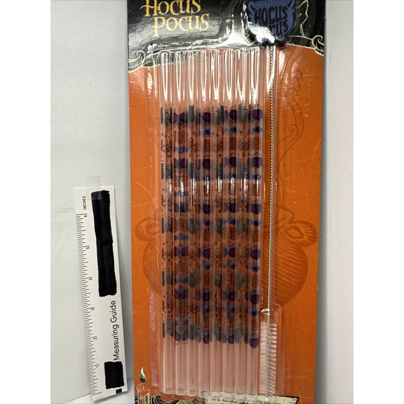 This 9-piece reusable straw set is perfect for any Hocus Pocus fan! The set includes 8 designed straws and 1 designed cleaning brush, all featuring an all-over pattern on clear color scheme. These reusable straws are perfect for sipping on your favorite beverages and are easy to clean with the included cleaning brush.