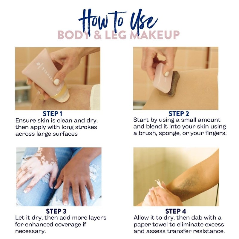 Use and application of the leg foundation is easy. Start by shaving at least 24 hours before application to ensure a smooth, even base. Then, using your hand or a brush, blend a small amount of the leg makeup into your skin, taking extra care to spot treat the areas you want to conceal most. Add in layers for a seamless, flawless finish.