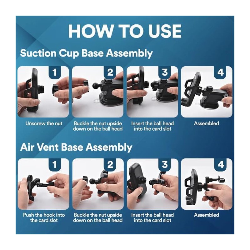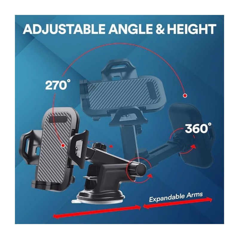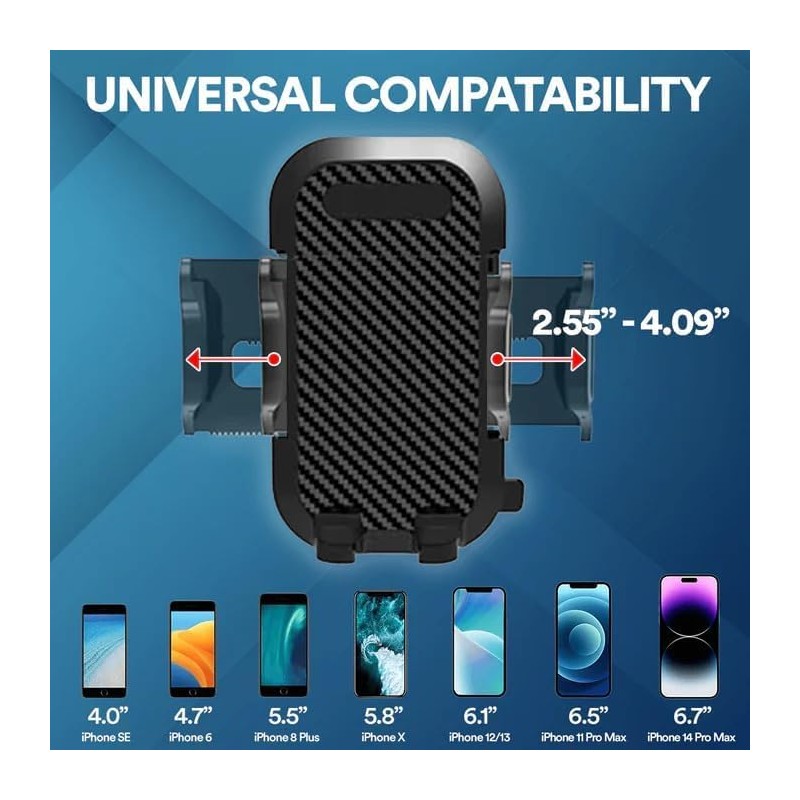 - 𝐖𝐈𝐃𝐄 𝐂𝐎𝐌𝐏𝐀𝐓𝐈𝐁𝐈𝐋𝐈𝐓𝐘: The adjustable arms of the car phone holder fit all phones (4.0-7.0 inches) and thick cases (including Otterbox). It securely mounts on the dashboard, windshield, or air vent, providing a versatile solution with one compact holder. Ideal for most cars, pickup trucks,lorries—perfect for Uber and Lyft drivers.