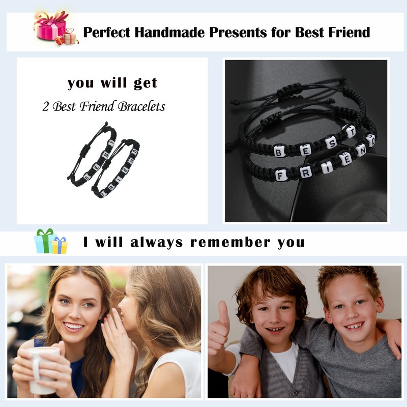 Best Friend Bracelet Matching Couples Gift for 2 Cord Bracelet Distance Friendship String Wristband,Black
