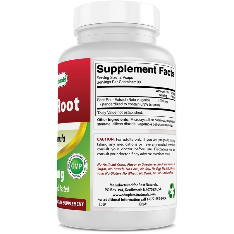 - 500 mg of BeetRoot per Vegetarian Capsule - 180 Capsules per Bottle.