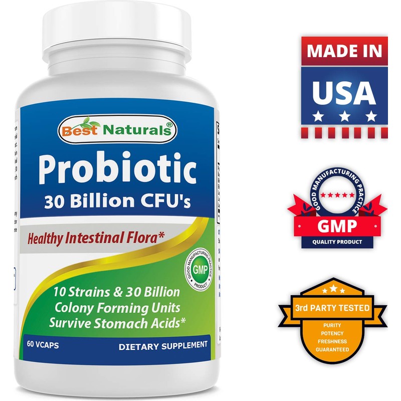 Best Naturals Probiotic 10 Strains & 30 Billion CFU Intestinal Flora, 60 Veggie Capsules (60 Count (Pack of 1))